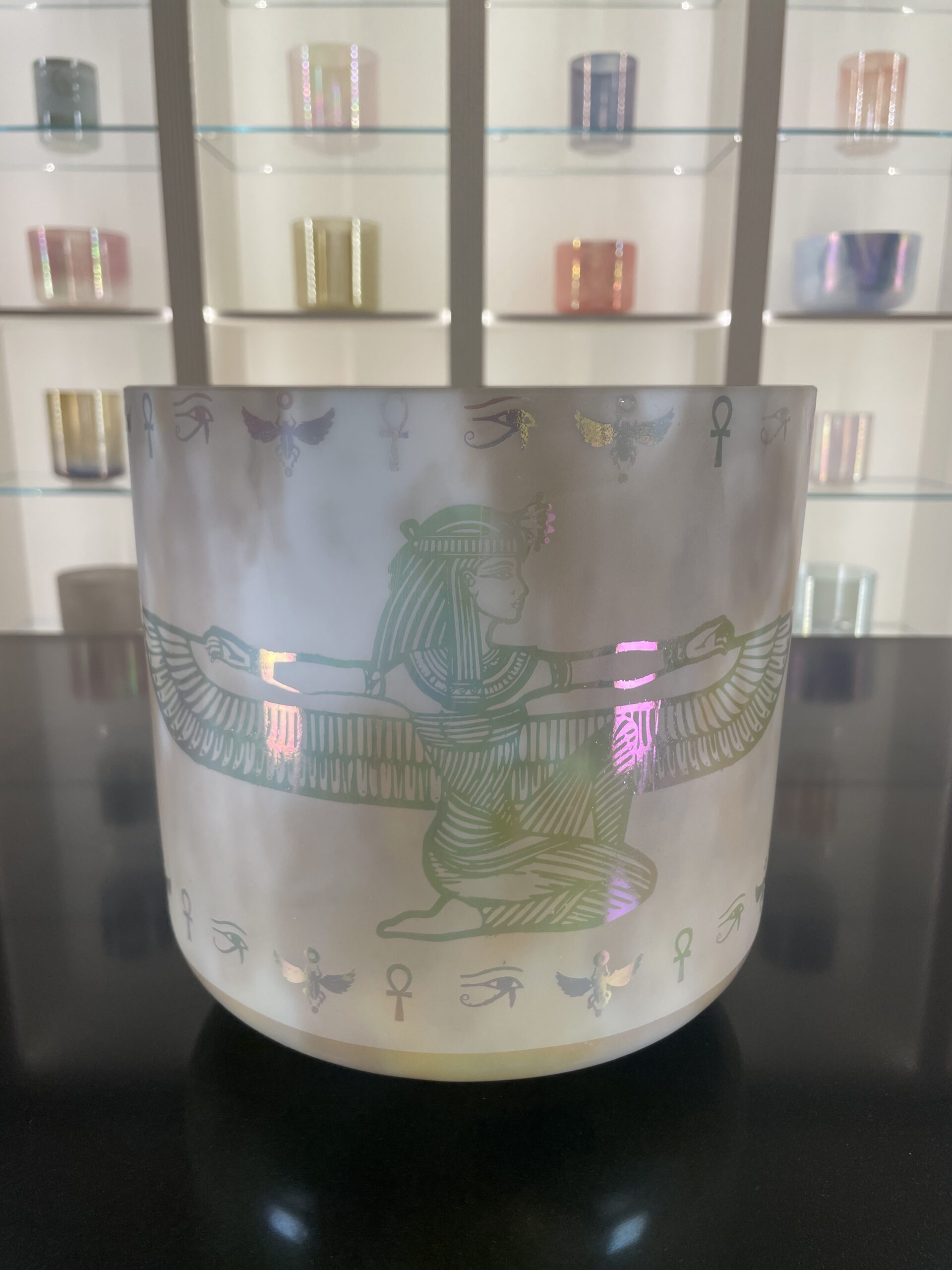 This 9-inch Feng Shui Bowl with its etched Egypt scene and key of G# True Tone is a testament to our commitment to creating instruments of unparalleled spiritual and aesthetic beauty. Whether for meditation, healing, or as a sacred artifact, this bowl is a profound addition to your practice, bringing balance, clarity, and a heightened consciousness to your daily existence.