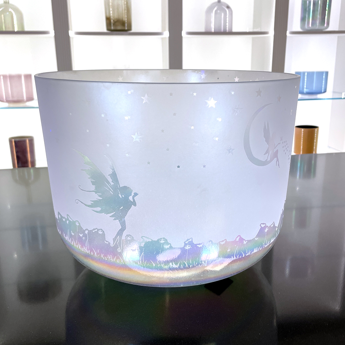 Platinum W/ Intricate Midnight Fairy Dream 12″ B +25 Crystal Tones Singing Bowl