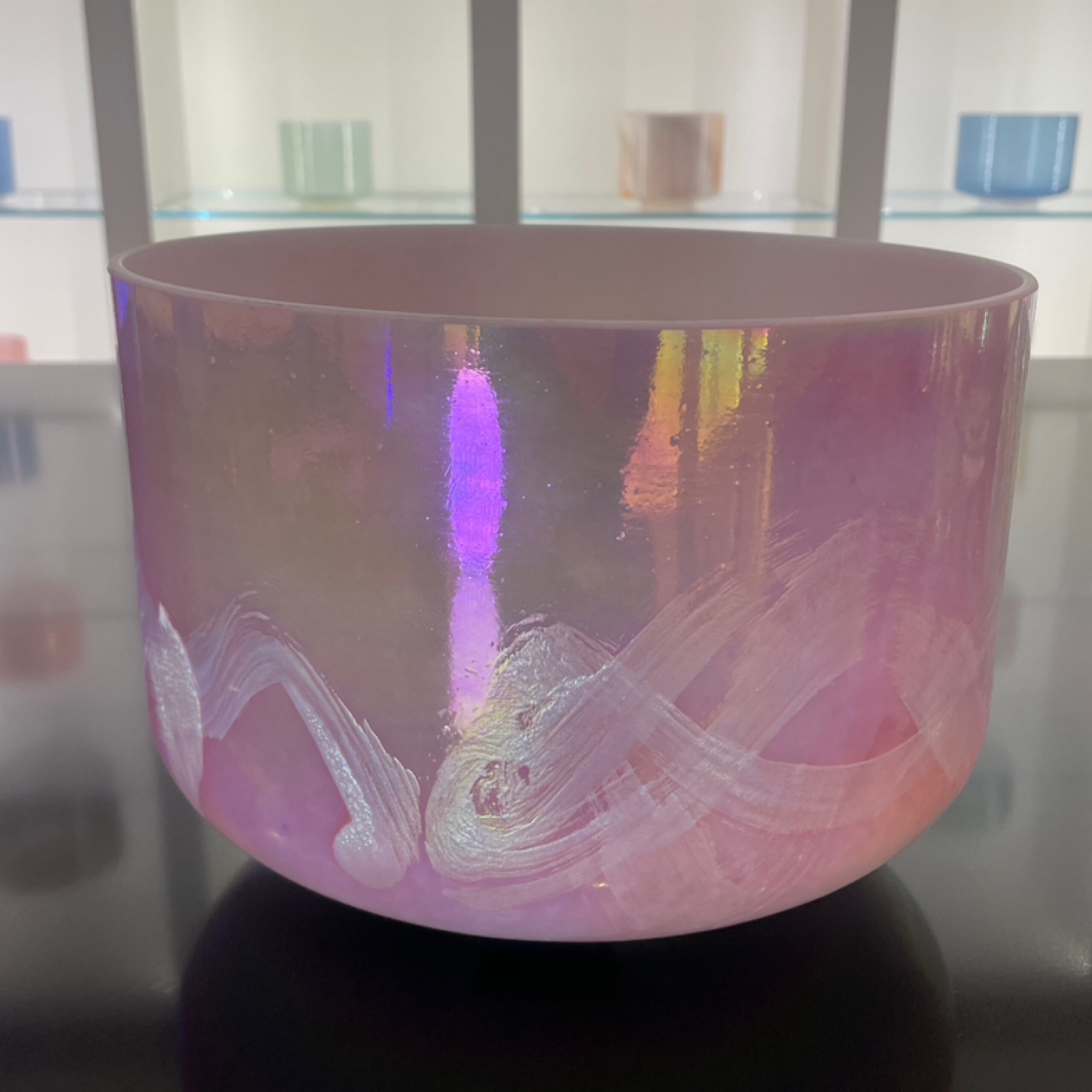 Home - Singing Bowls - Rhodochrosite, Platinum 10″ B +10 Crystal Tones Singing Bowl